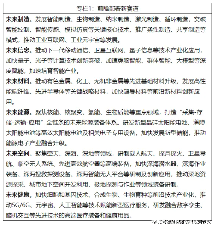 正在规划计谋性新兴财产成长的同时,国度层面临将来财产进行了前瞻谋划摆设。《关于鞭策将来立异成长的实施看法》中显示,沉点推进将来制制、将来消息、将来材料、将来能源、将来空间和将来健康六大标的目的财产成长。