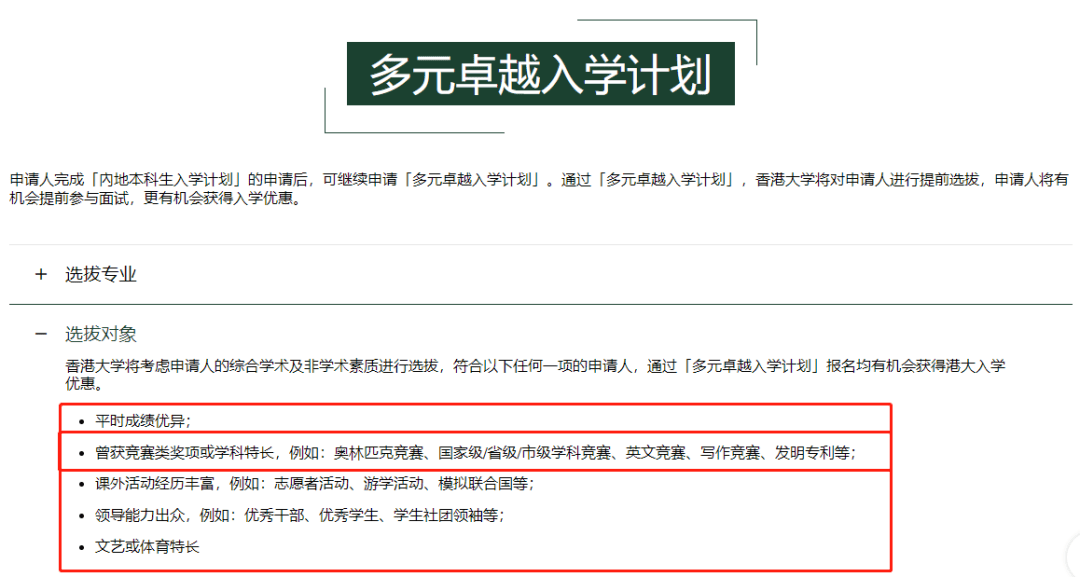 由于两个项目都非分特别看沉文化艺术方面的学术能力,沉点强调了竞赛获的升学劣势。好比港大的多元杰出入学打算提出,合适以下任何一项的申请人均无机会获得港大入学优惠。