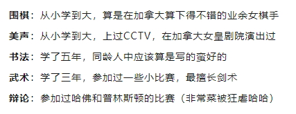 因而,针对这两个项目能够说需要列位同窗拿出很长一段时间去堆集和丰硕本人的小我履历。像M同窗就是家长帮着从八年起头接触编程,十年级正式加入了VEX机械人角逐,拿的同时还正在后期考下了VEX的国际裁判证,以及其他各类丰硕小我简历的勾当履历。
